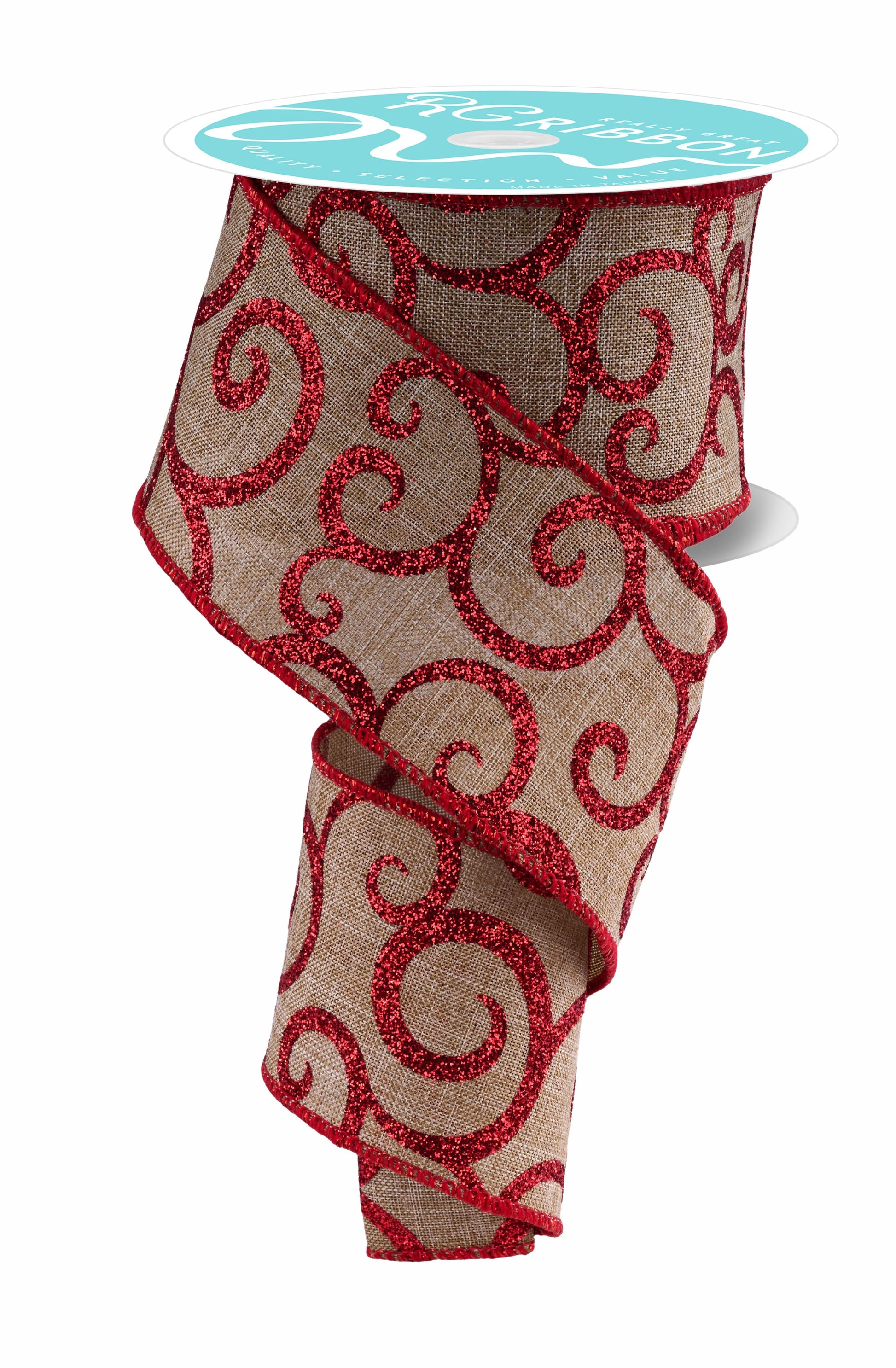 2.5" x 10yd Glitter Swirl/Royal Beige/red ribbon