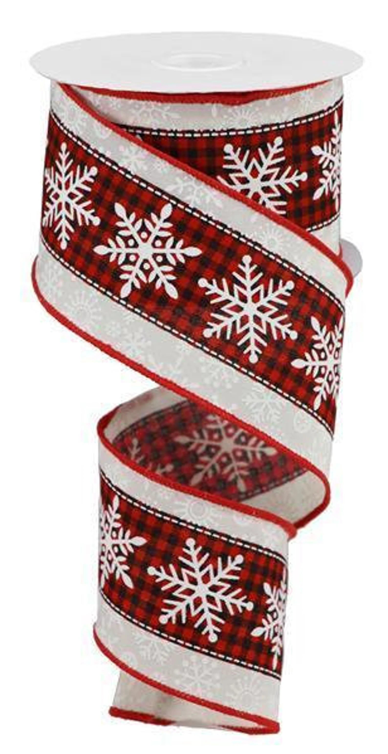2.5" x 10yd Snowflake On Check red/white/black wired ribbon
