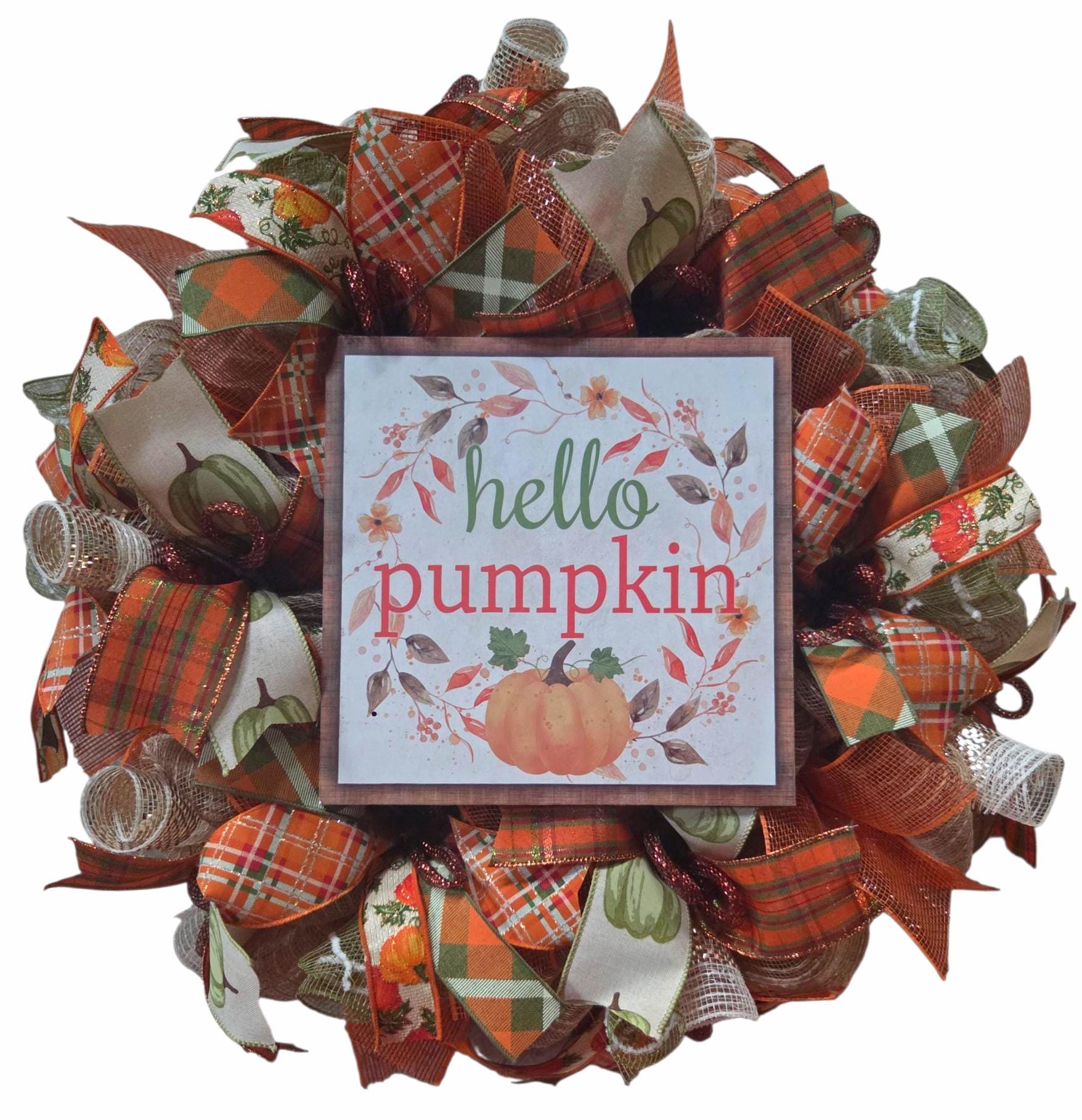 Setting off this wreath are ribbons full of fall colors in plaids, pumpkins and shimmering accents!