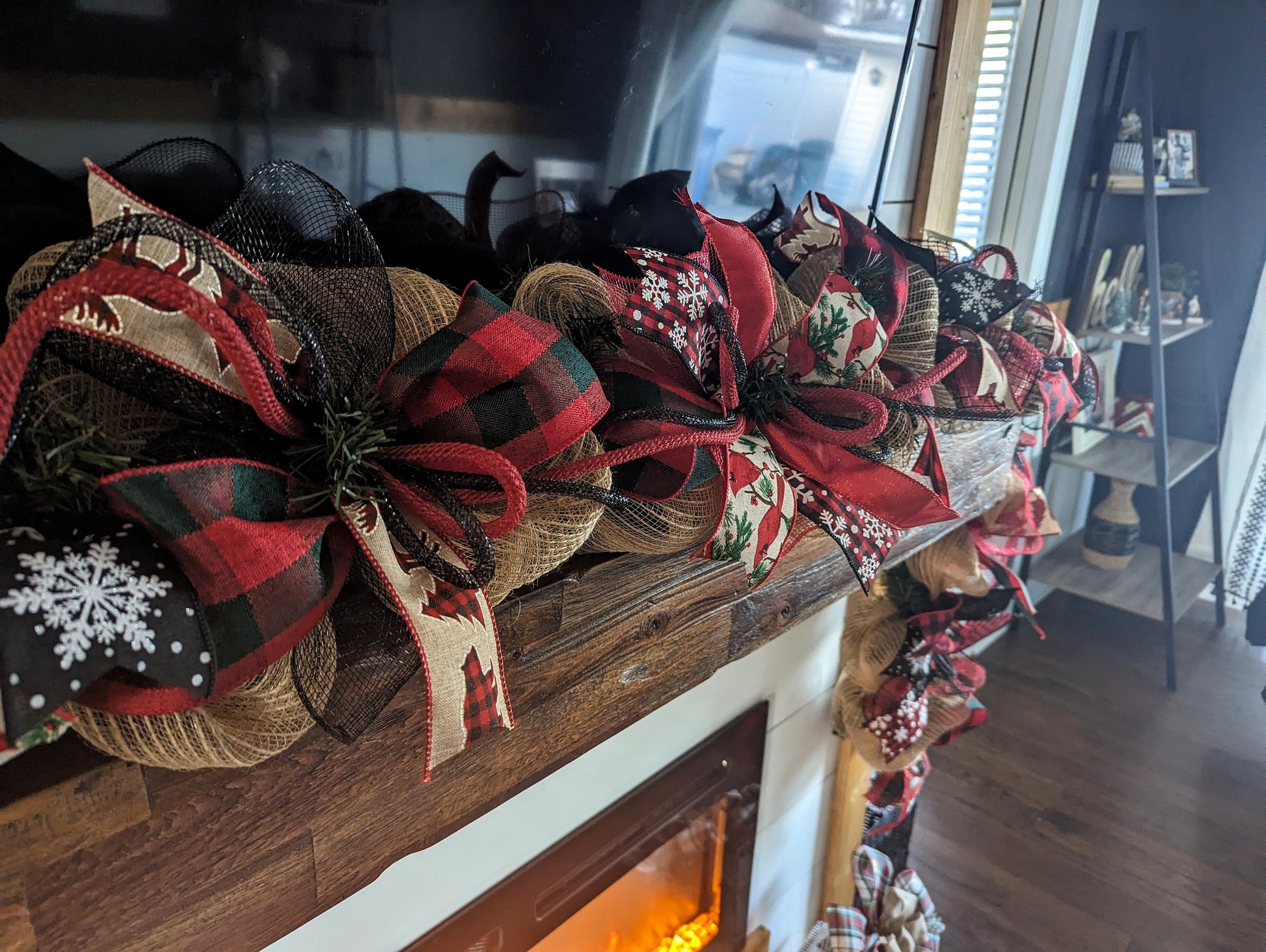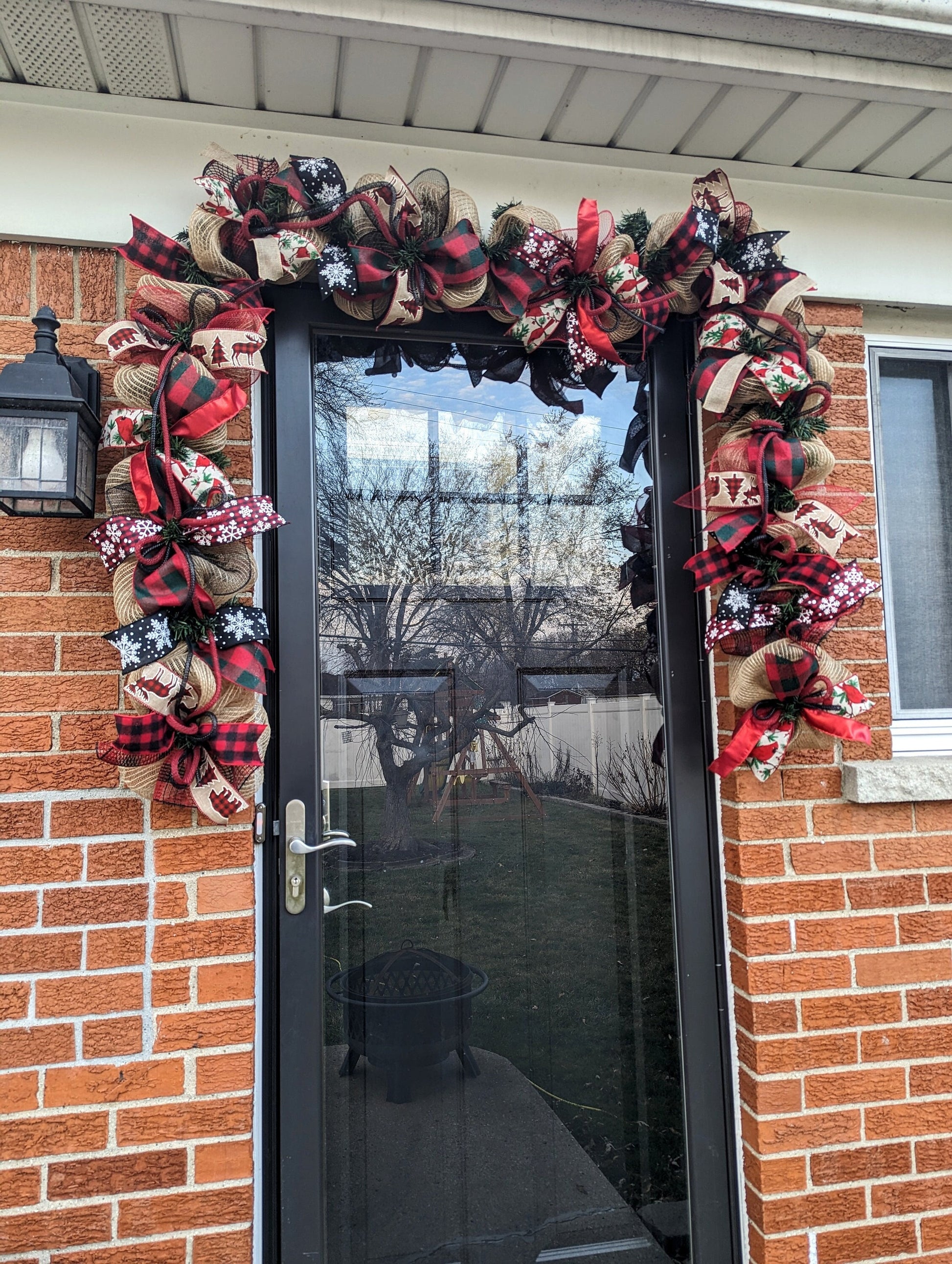 This 9 ft. Buffalo plaid Christmas and jute Christmas Garland was created on Jute base on greenery pine and holds ruffles of burgundy jute and black. In this item is a weaved Christmas plaid and natural 4" ribbon and a 4" buffalo plaid accented ribbon. You will also find snowflakes and woodland inspired animals surrounded by black and red jute tubing!